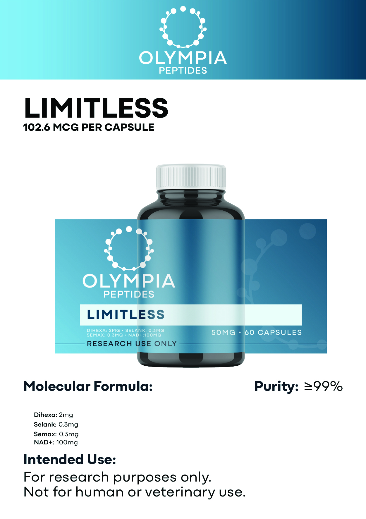 This formulation features a combination of Dihexa, Selank, Semax, and NAD+, each researched for their potential roles in supporting cognitive function, neuroprotection, and cellular energy metabolism. Dihexa is researched for its influence on synaptic growth and neuronal connectivity. Selank and Semax are researched for their effects on neuropeptide regulation and cognitive resilience. NAD+ is researched for its role in cellular energy production and metabolic processes. Together, this combination is researched for its complementary effects on neural efficiency, cognitive performance, and cellular energy regulation in research settings.